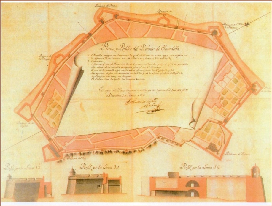 Planol Muralles de Ciutadella. Blas Zappino 1782.